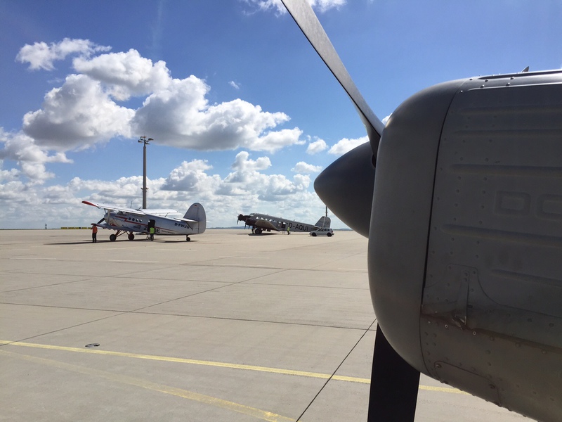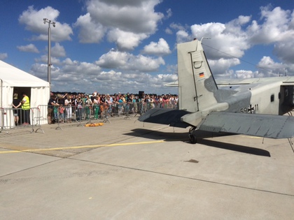 Dornier 28D-2, konnten die Besucher den Wolken auch in dem Doppeldecker Antonow AN-2, den Helikoptern Bell 206 JetRanger und Eurocopter EC 120 nah sein. Wer sich traute, ergriff die Chance bei einem Kunstflug mit der Jakolew JAK-52, JAK-54 und Zlin 526F dabei zu sein. Die Junkers Ju 52 der Deutschen Lufthansa Berlin-Stiftung - liebevoll "Tante Ju" genannt - erreichte den Flughafen am Samstagabend, um ihre Fans am Sonntag und sogar Montag noch zu begeistern.