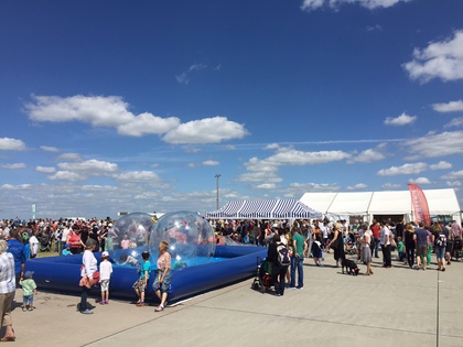 Neben dem Flugprogramm des Flughafenfestes, konnten die Gäste die Abfertigungen der Flugzeuge des regulären Flugbetriebs ganz nah beobachten. Einige geladene Gäste und Flughafenmitarbeiter durften sogar einen Sitz in einer Boeing 737 der Germania Fluggesellschaft mbH beziehen und die Kulisse von oben betrachten.