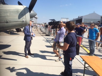 Zeitungsredakteure hatten den Verlegungsflug zum Flughafen Hamburg zunächst begleitet. Zwei Tage lang dienten unsere Flugzeuge zudem als Kulisse für Kamerateams des NDR. Die